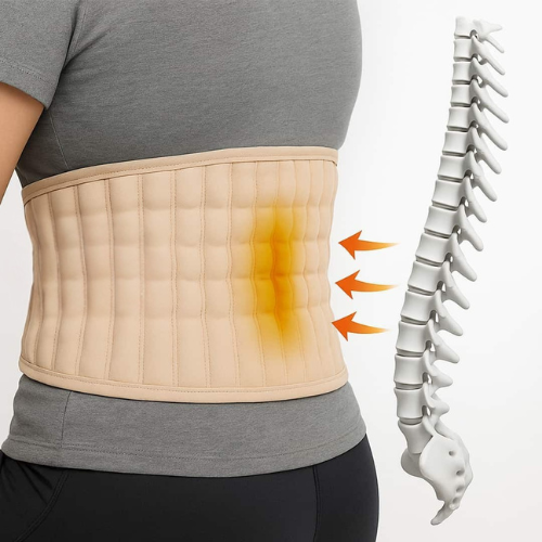 Bältet har ett uppblåsbart system som anpassar sig efter din rygg och ger ett jämnt stöd längs ländryggen. Det hjälper dig att minska belastningen i vardagen och förbättrar hållningen.
